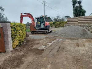 nous avons terrasser l’entrée et gravillonner par dessus